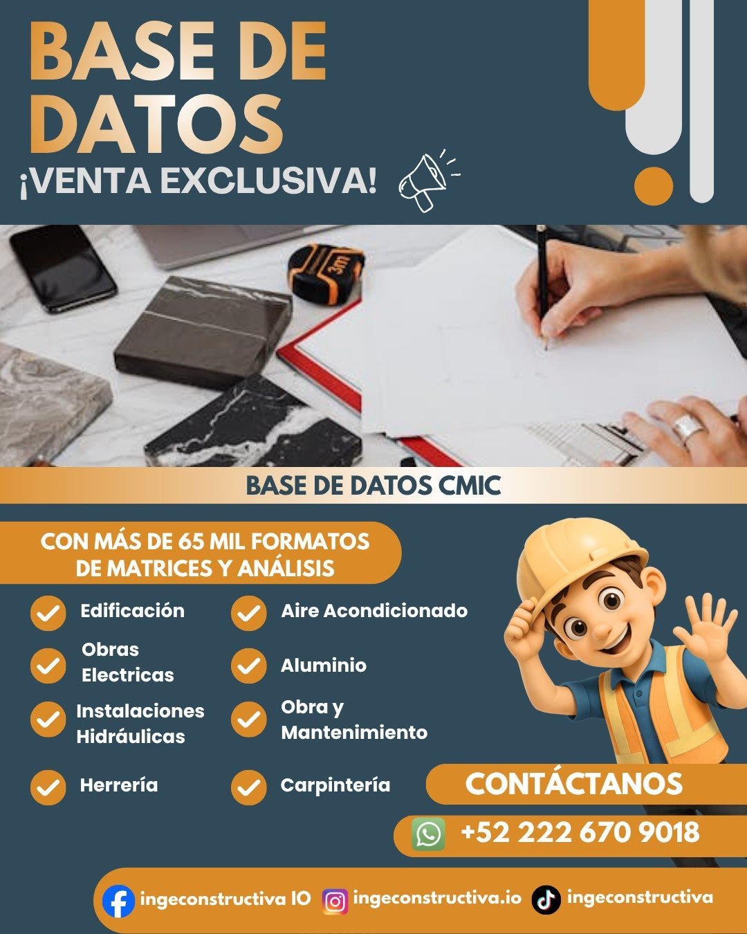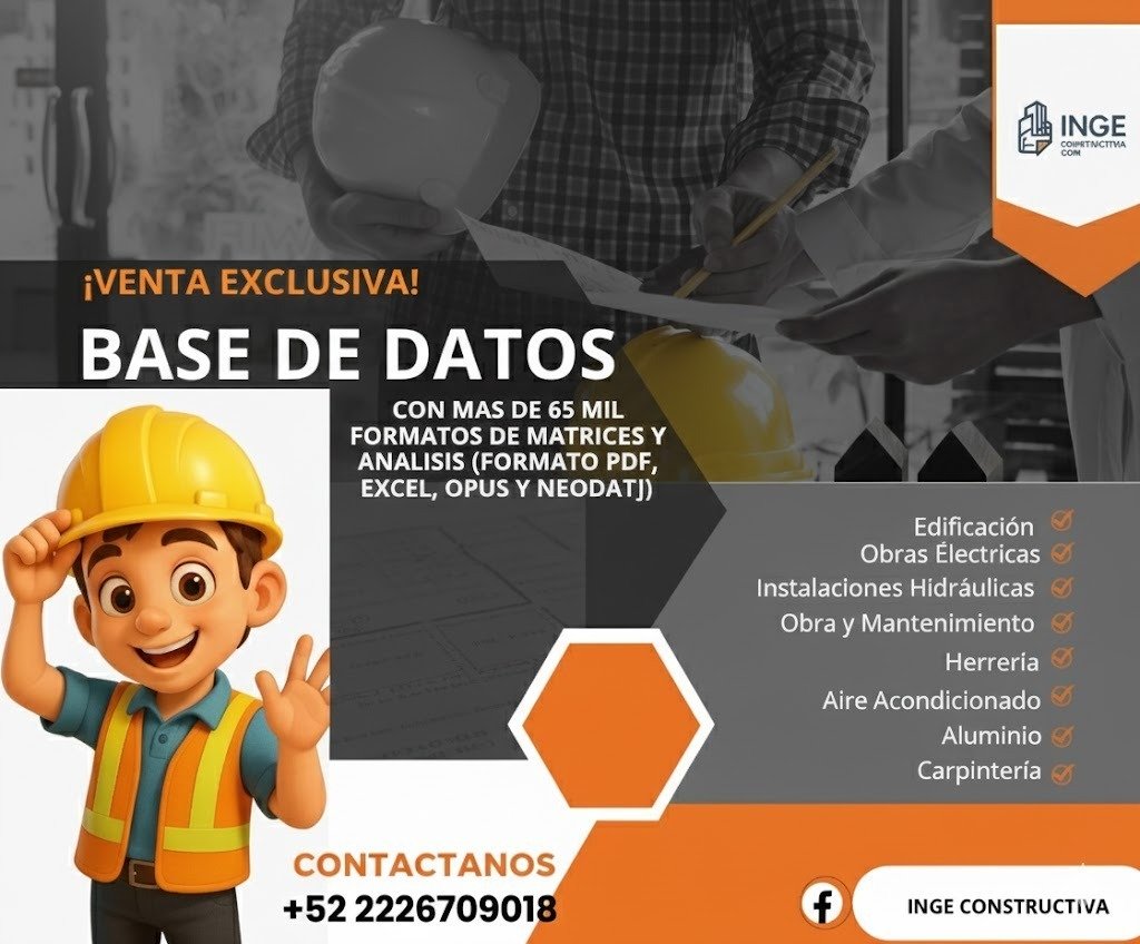 @ignconstructiva 👉 ESCRÍBENOS AHORA VÍA WHATSAPP: 📲 CONTACTO: 2226709018 Facebook: Ingeconstructiva IO Instagram: @ingeconstructivaio ⏳ OFERTA VÁLIDA POR: válida por tiempo limitado (cupos reducidos) #Basededatos #IngenieríaCivil #ConstrucciónDigital #DiseñoProfesional ♬ sonido original - ingeconstructiva
